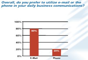 The top three reasons cited by respondents who preferred e-mail over the phone were that e-mail facilitates communication with multiple parties, enables more rapid communication and generates a written record of the interaction.